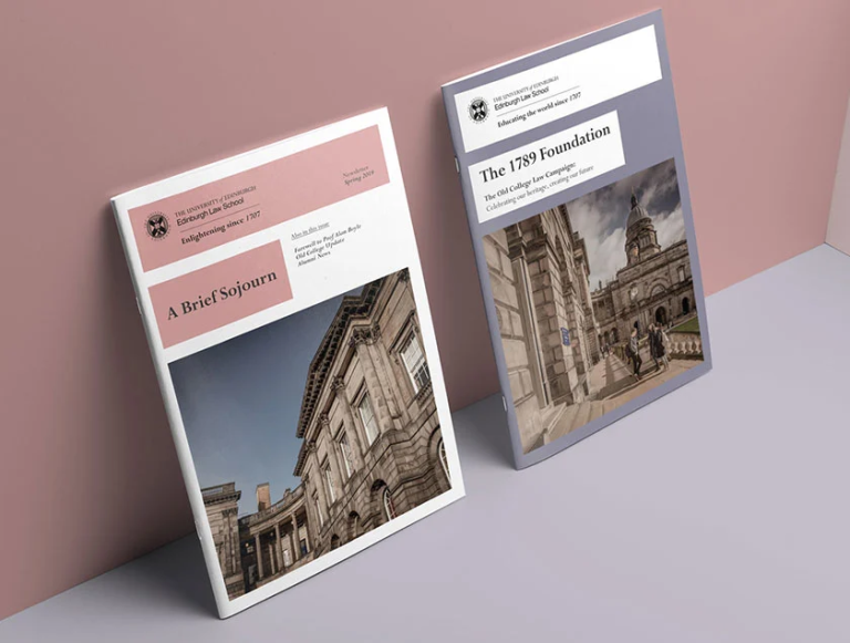 Our primary challenge was to create a visual style that would be clearly recognisable as Edinburgh Law School but remain aligned with the University’s core brand.